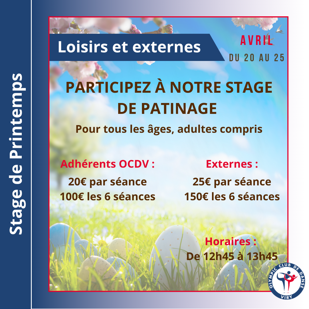 L’OCDV, Olympic Club de Danse sur Glace de Viry-Chatillon, est un club de patinage, le club le plus important autour de Paris et en Ile de France avec des cours dispensés à tous les niveaux: débutants, loisirs, compétitions régionales, nationales et internationales en danse sur glace mais aussi en ballet sur glace. Lors de la saison 2022-2023, le club a terminé 1er au classement de l’Ile de France et 5ème au classement national des clubs!